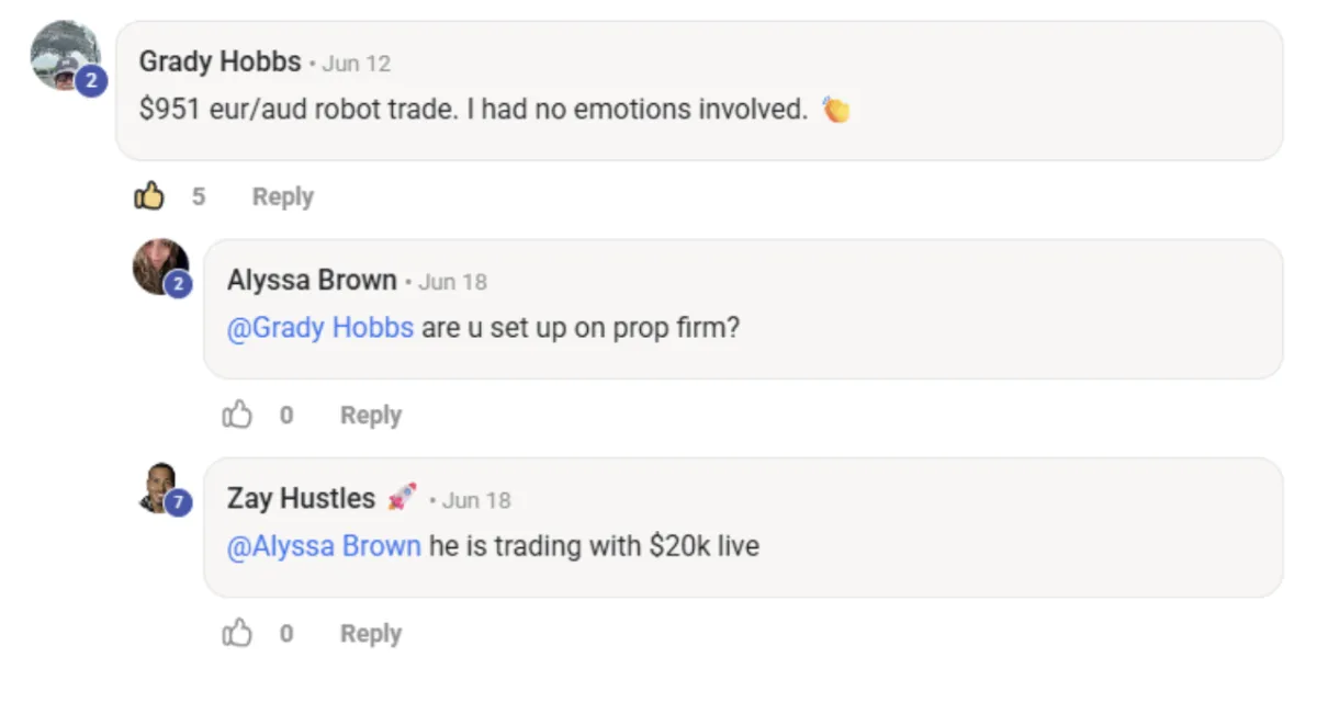 Share your wins, get help when trades don't work, and talk to people who know what it's like trying to make money while working your regular job.