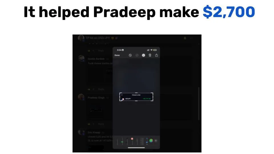 Our complete video tutorial library teaches you everything you need to know in under 2 hours. Not complex theories you'll never use - just the practical basics: how to place a trade, how to set a stop loss, how to read our signals.